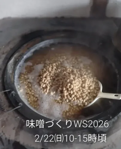味噌作りワークショップは2/22㈰10-15時頃に行います。味噌キット代+参加費500円です(野菜定期会員は参加費無料)。好きな時間にお越しください。所要時間は1時間くらいです。味噌汁をサービスしますので、おにぎり持参してもらってもグッドです。