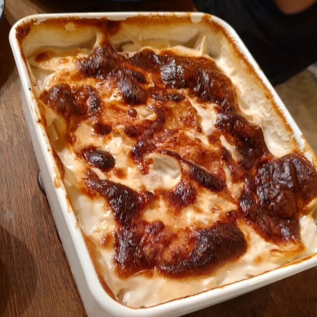 里芋の親芋でグラタン・ドフィノワをフランス人のエリオットに作ってもらいました。 里芋に火が通らず固く…